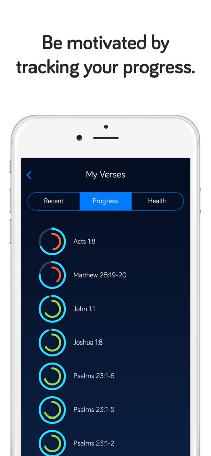 Then, after memorizing a passage, Verses tracks your MEMORY HEALTH to help you maximize retention while minimizing workload.