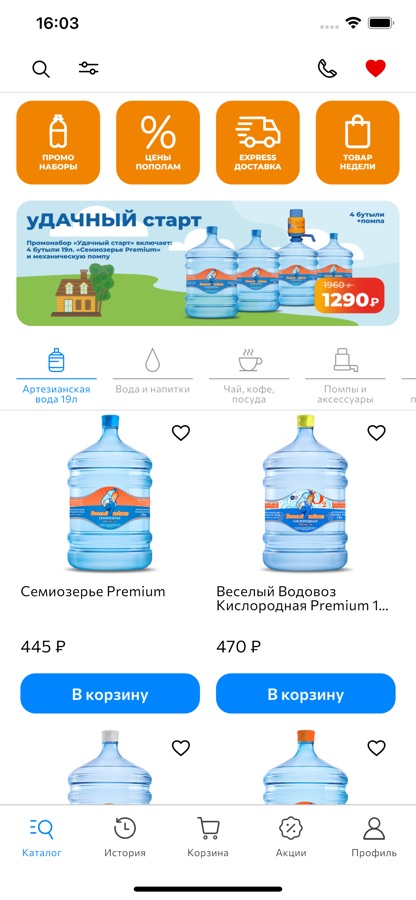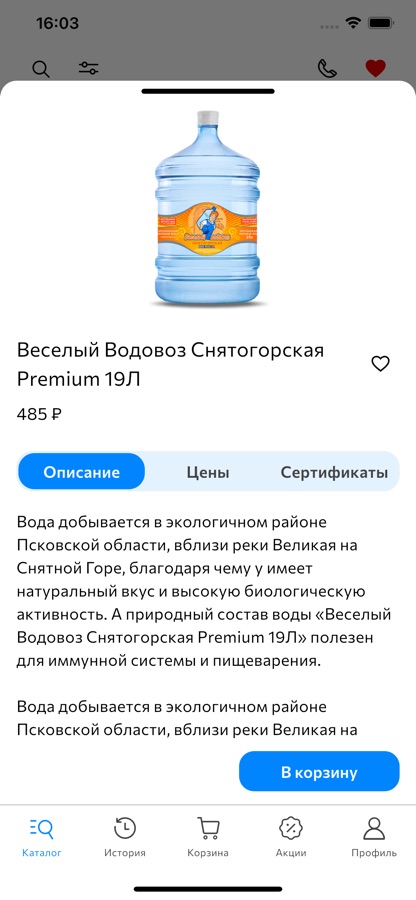 Удобное и современное приложение для заказа воды и оборудования компании Весёлый водовоз в Санкт-Петербурге.