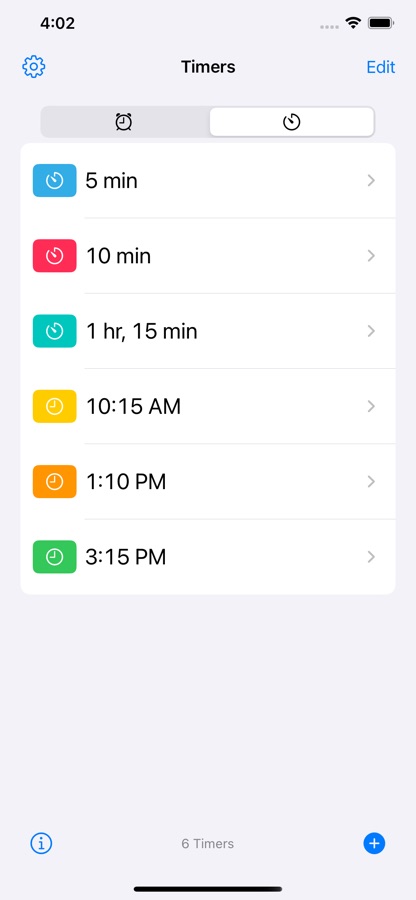 — Any number of preset alarms and timers