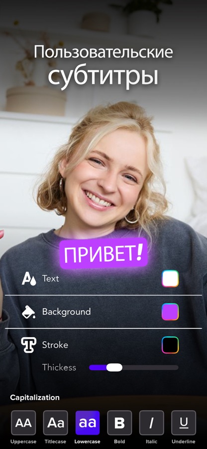 — Настраиваемые стили субтитров: Редактируйте свои видеосубтитры так, чтобы они соответствовали визуальной эстетике вашего контента, от динамичных влогов до профессиональных презентаций.