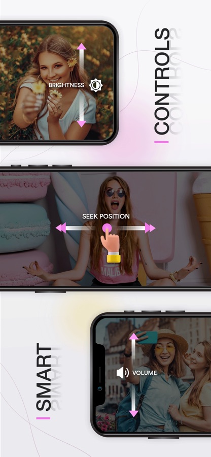 — Скольжение экрана видео для управления громкостью, яркостью экрана и ходом воспроизведения.