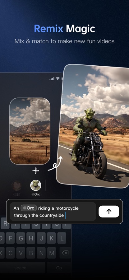 Community Remix: See an idea you love? Tap “Remix” to instantly turn it into your own unique creation with matching visuals and sounds.