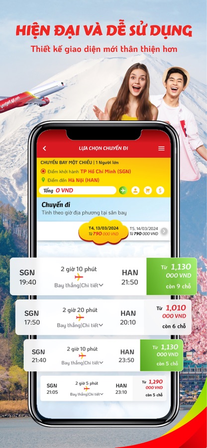 Ứng dụng Vietjet đem lại trải nghiệm hoàn toàn mới, thân thiện với người dùng và các thao tác đặt vé, tìm kiếm chuyến bay dễ dàng, nhanh chóng. Hãy tải ứng dụng ngay để trải nghiệm các tính năng mới và những tiện ích hiện đại, cùng nhiều ưu đãi bất ngờ. Bay là Thích ngay cùng Vietjet!
