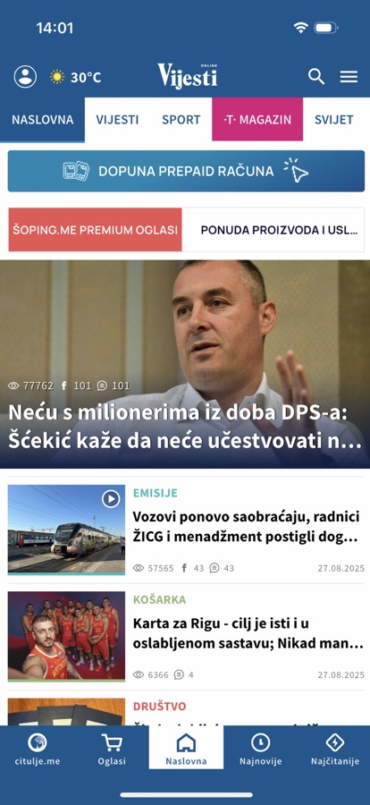 Sada uz «Vijesti» besplatnu aplikaciju za iPhone i iPad možete i na tim platformama pratiti najnovije vijesti iz Crne Gore i svijeta, sporta, šou biznisa, uživati u foto i video galerijama.