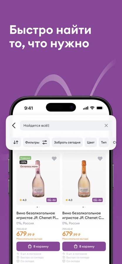 Мы стремимся сделать наше приложение максимально удобным для пользователей, поэтому объединили в нем самые необходимые услуги — включая онлайн-заказ напитков. А с помощью удобных фильтров внутри приложения легко выбрать подходящие товары для любого случая — будь то торжественная церемония, вечеринка на веранде или встреча с друзьями.