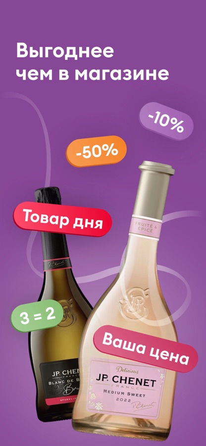Предназначено для лиц старше 18 лет. Данный материал носит исключительно информационный характер и не является рекламой спиртных напитков. Мобильное приложение не предусматривает возможности онлайн-покупки и доставки товаров на дом. Продажа алкогольной продукции осуществляется исключительно в магазине.