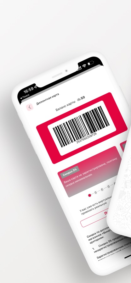 - Совершайте выгодные покупки быстро с помощью дисконтной карты, которая всегда под рукой. Для получения скидки достаточно предъявить штрихкод на кассе.