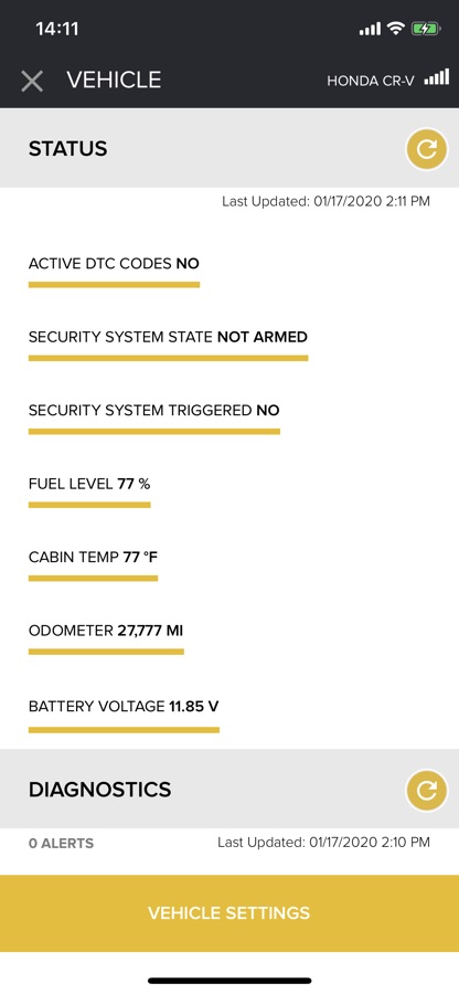— Real time status on your favorite dashboard! Check the remote start runtime or whether your doors are locked and more instantly just by opening the app! (digital systems only)
