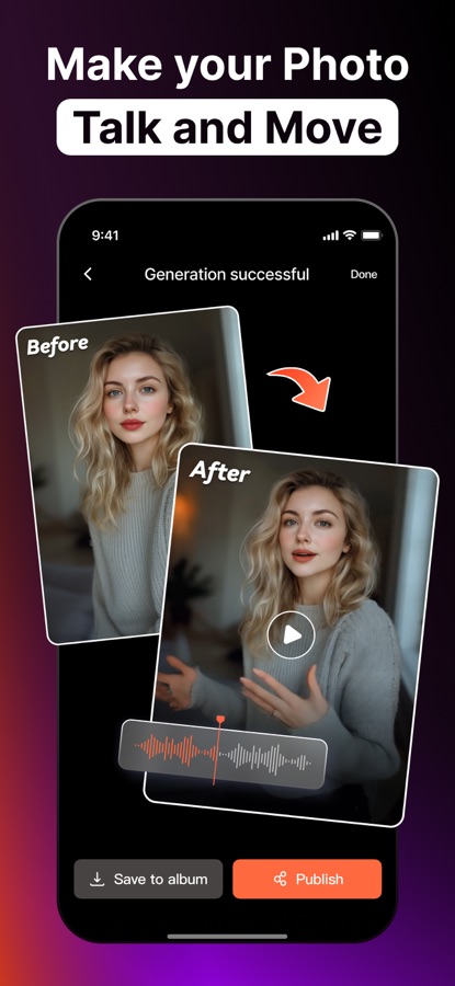 — Оживите фотографии: просто импортируйте, экспортируйте и преобразуйте свои фотографии в говорящие шедевры.