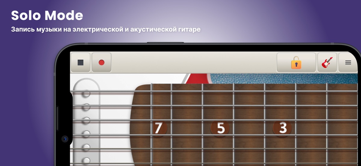 В «Solo Mode» Вы можете играть без помощи нашего самоучитель игры на гитаре и запись музыки и слов. Записанные музыкальные файлы могут быть разделены с семьей, друзьями и любимыми раз.