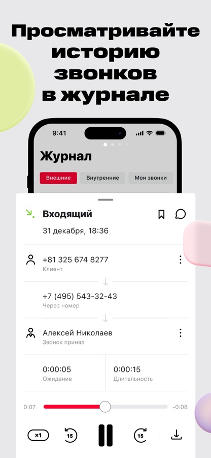 Следите за звонками и слушайте их записи:
