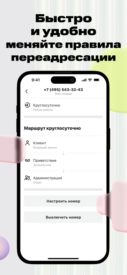 Мобильное приложение ー это удобная альтернатива веб-интерфейсу Виртуальной АТС. Благодаря приложению основные функции услуги доступны прямо в смартфоне, в любую минуту и где бы вы ни находились.