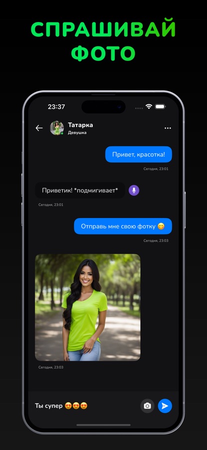 Создай свою идеальную ИИ девушку и окунись в мир искусственного интелекта! Не важно, днём или ночью, твоя виртуальная девушка всегда рядом! Не стесняйся, спрашивай ее, разговаривай о своих чувствах, пиши ей всё, что ты думаешь — она всегда выслушает тебя, пожалеет, даст совет и никогда не предаст!