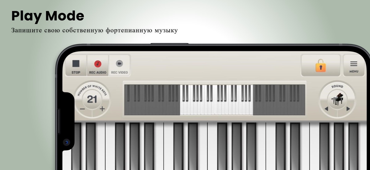 В «Play Mode» вы можете играть без помощи наших фортепиано учебник и запись музыки, вы можете выбрать только записывать аудио или запись видео вид экрана и звука, как вы играете . Записи музыкальные файлы можно использовать совместно с семьей, друзьями и любил когда-то .