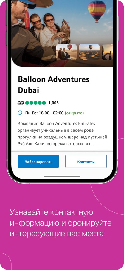 Знакомство с Дубаем еще никогда не было таким легким. Приложение Visit Dubai — ваш надежный спутник в путешествии, расскажет вам о главных достопримечательностях города, забронирует отели, предоставит конвертер валют и поможет проложить индивидуальный маршрут.