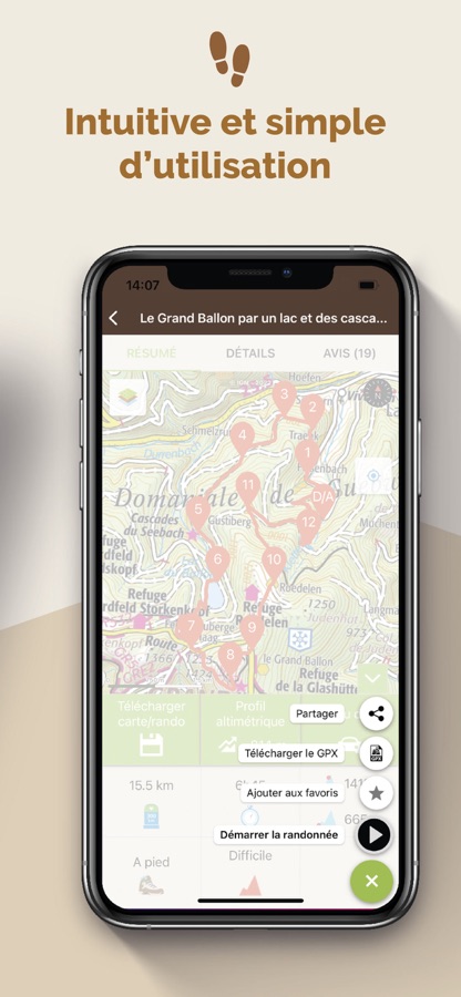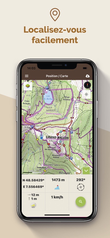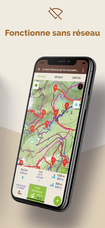 — Enregistrer votre trace en direct et suivre votre progression sur la carte (distance, durée, dénivelé…). Si vous vous perdez, vous pourrez retourner sur vos pas grâce à la trace enregistrée.