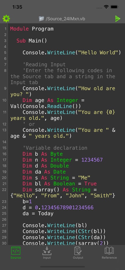 Скачайте приложение Visual Basic (VB.NET) Compiler для iOS бесплатно - последняя версия (2.5) уже доступна для установки на ваш iPhone или iPad.