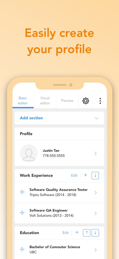 Over 3,000,000 people use VisualCV.com to create stunning online resumes & portfolios. Now you can do the same — on your mobile device. And better yet, it’s free!