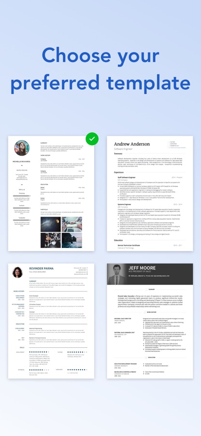 It features easy-importing from existing resume (PDF / Word), professionally designed templates, and easy editing options to ensure you always have a resume ready to impress your future employer.