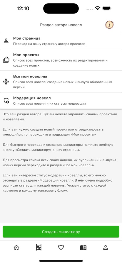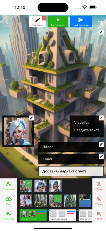 · Публикация и распространение. Готовые новеллы можно опубликовать внутри платформы и распространять ссылку в социальных сетях, чтобы привлечь широкую аудиторию.