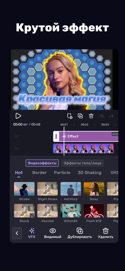 VivaCut — это видеоредактор с полным набором функций! Используйте музыкальные переходы, VFX, глитч-эффекты, а также многослойную временную шкалу для создания красивых видео для соцсетей.