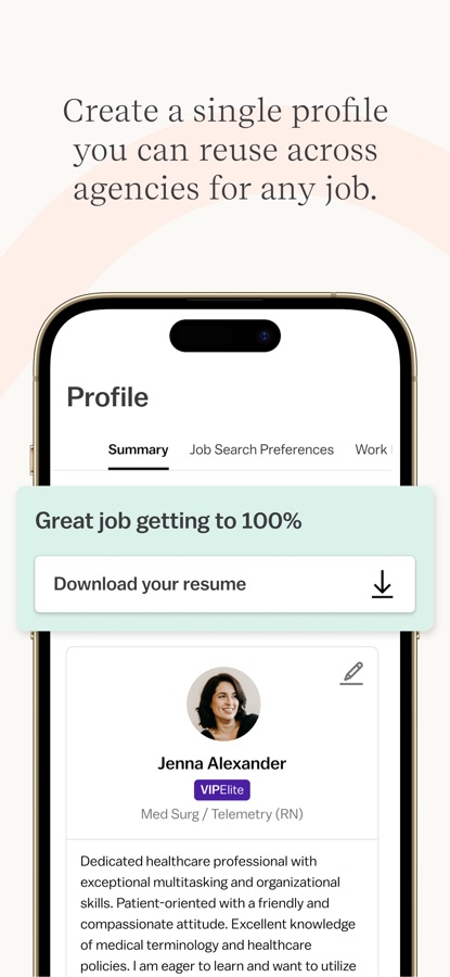 “I love that I can essentially load up my profile and apply to a multitude of jobs from multiple companies and sort those jobs by specifics of state, shift, pay, permanent or travel jobs.”
