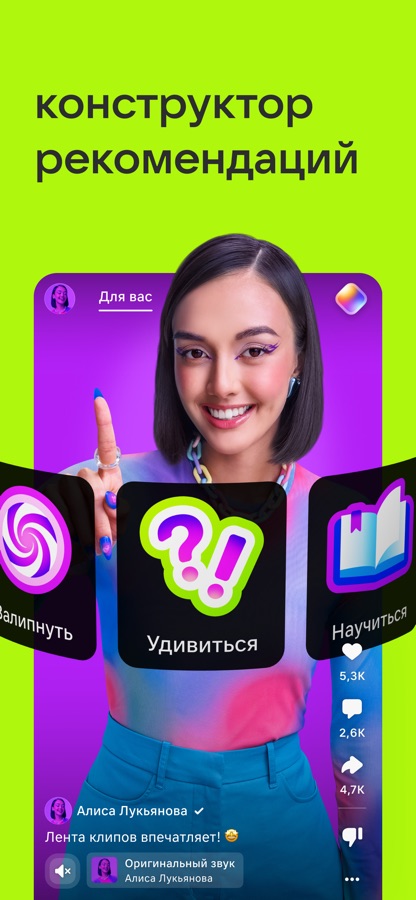 Это приложение, в котором можно смотреть и создавать видео с музыкой и без на разные темы: от развлечений до образования. А ещё «Клипы» — это место встречи впечатлений. Здесь каждый может найти классных авторов и интересный контент, чтобы расслабиться, повеселиться или узнать что-нибудь новое.