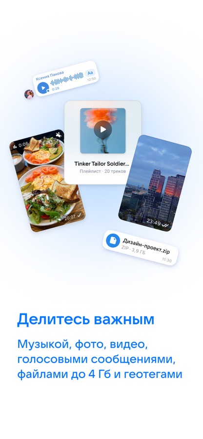 • Обменивайтесь в мессенджере голосовыми сообщениями, текстом и видеосообщениями