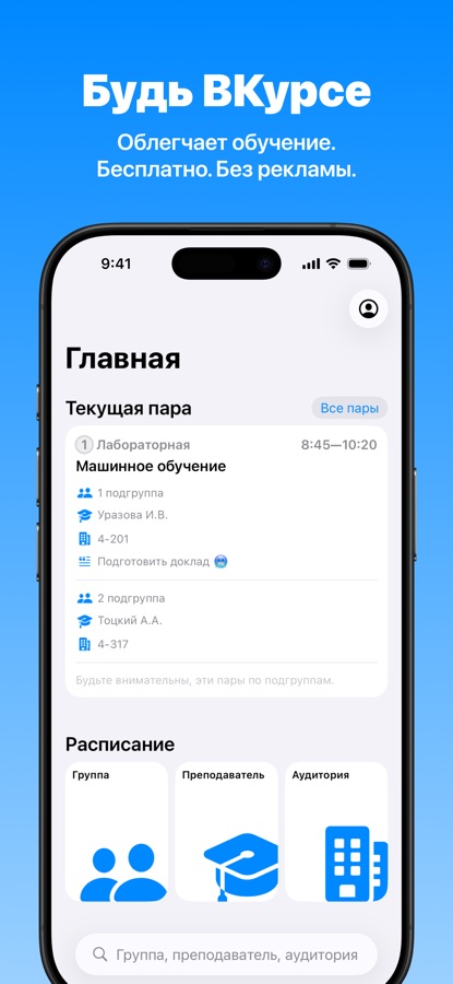 АКТУАЛЬНО: ВКурсе использует только самые актуальные данные от университетов, что не позволит вам перепутать расписание.