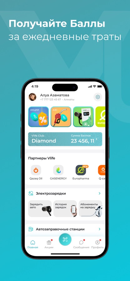 Заправляйтесь в крупнейших сетях АЗС Qazaq Oil и GASENERGY, заряжайте электромобиль с Qazaq Energy Charge, совершайте покупки в сети аптек Europharma, заботьтесь о здоровье с Whey.kz, оплачивайте платежи и накапливайте Баллы в Vlife.