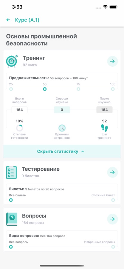 Приложение для быстрой подготовки к аттестации по промышленной безопасности. Используем самые актуальные вопросы. Применен инновационный алгоритм обучения, который позволяет запомнить вопросы гораздо быстрее.