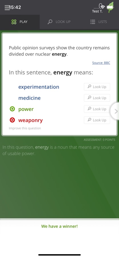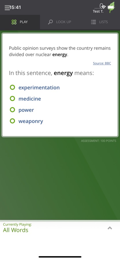 • Just play a few questions, and we’ll pinpoint the words that are appropriate for your level.