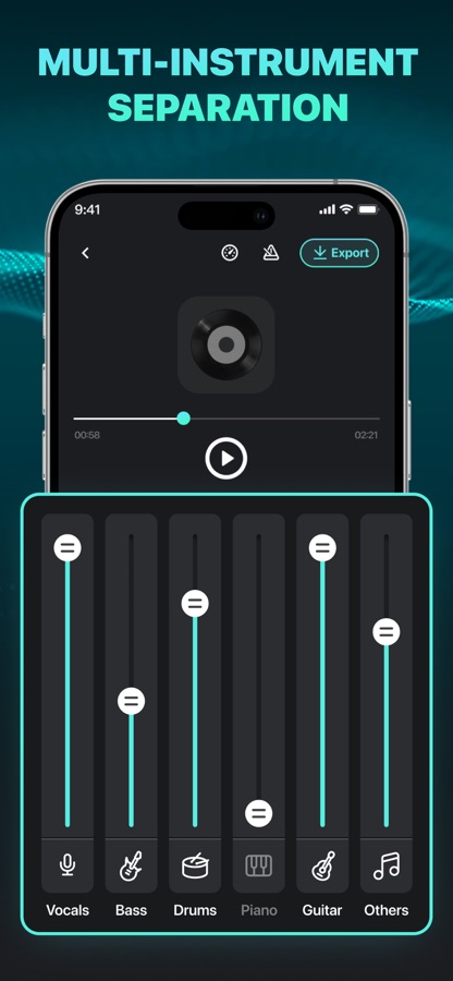 — Save your separated tracks in various formats or share them with friends.
