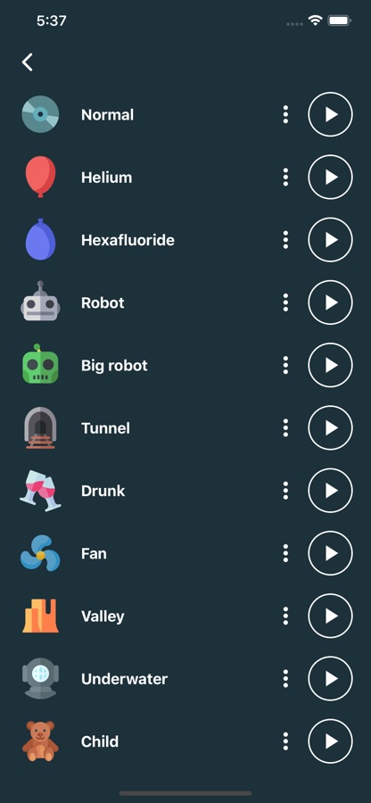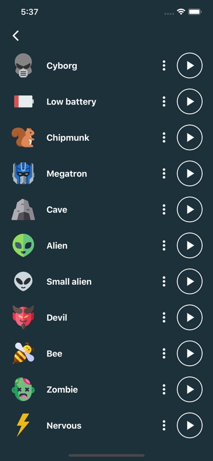 • More than 25 effects: robot, alien, zombie, helium, drunk, chipmunk, death, cave, underwater, devil, telephone, swirl, fan, … and many more!