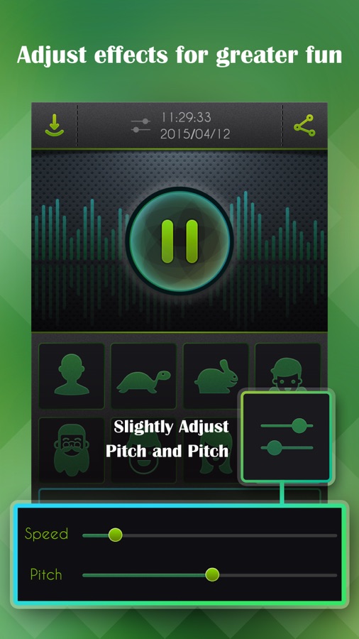 Discard the boring recorder! It’s time for you to change your voice. With Voice Changer, you can record sounds and directly apply special effects to make it amazing. If you are a girl, you may wish to sound like a man to joke with your friends. Have Fun!