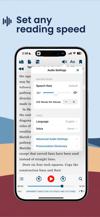 2021 Apple Design Award Победитель! Читайте вашими ушами. Voice Dream Reader является широко известным приложением настольного -класса, которое читает вслух статьи, документы и книги. Продвинутый синтезатор речи и высоко настраиваемый визуальный макет, может быть адаптирован для любого стиля чтения и уровня.