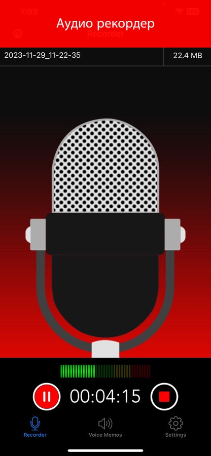 Voice Recorder представляет собой простой в использовании и удобное приложение для записи встреч, лекции, музыка и многое другое. Интерфейс разработан, чтобы сделать это быстро. С одним нажатием вы можете записывать и делиться записями.
