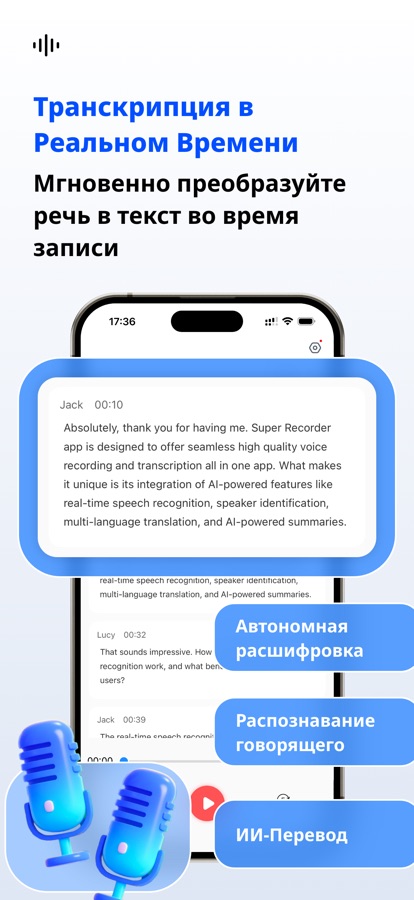 — Запись в текст, транскрипция в реальном времени, эффективно и удобно.