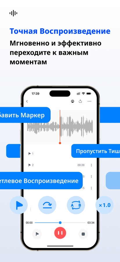 — Добавление меток: отмечайте важные моменты времени, чтобы облегчить воспроизведение и систематизацию заметок