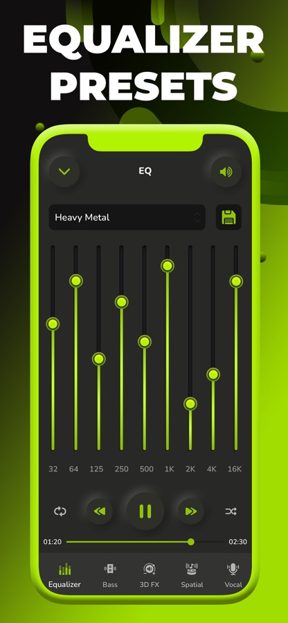 — Music equalizer boosts volume and ensures no distortion when increasing