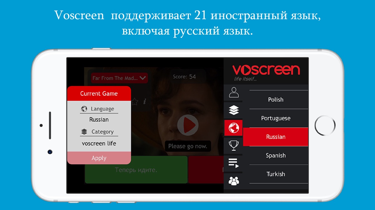 • Voscreen повышает вашу мотивацию, благодаря естественной среде обучения.