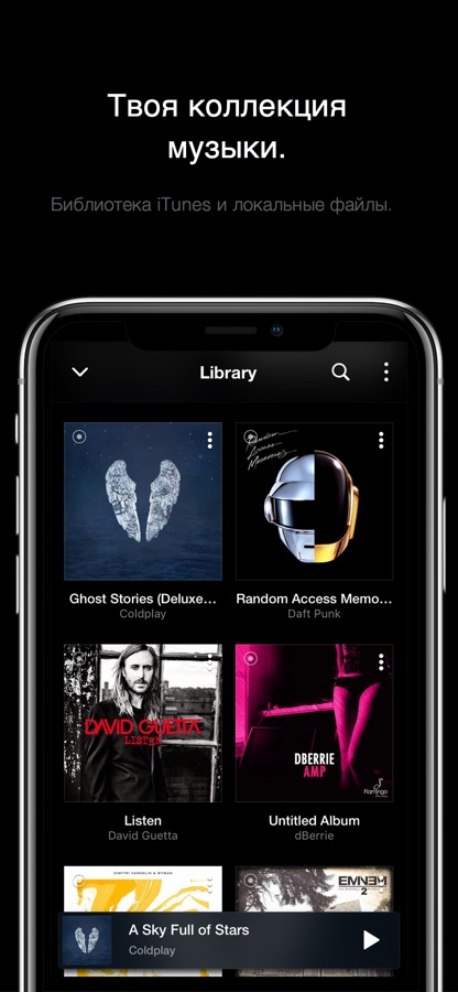 Личная музыкальная коллекция, SoundCloud®, Qobuz*, iTunes — слушай музыку в отличном качеcтве из разных музыкальных источников.
