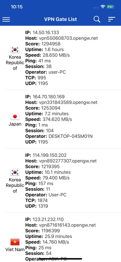 VPN Gate List provide list of VPN Server by volunteer from open source project vpngate. With VPN Gate List you can search VPN Server by country, change sort of server list by country, speed, uptime, etc.., you also change sort type ascending or descending.