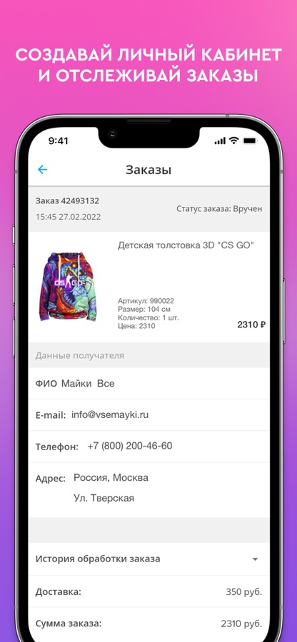 • получайте мгновенные уведомления (push-уведомления) о состояниях вашего заказа;