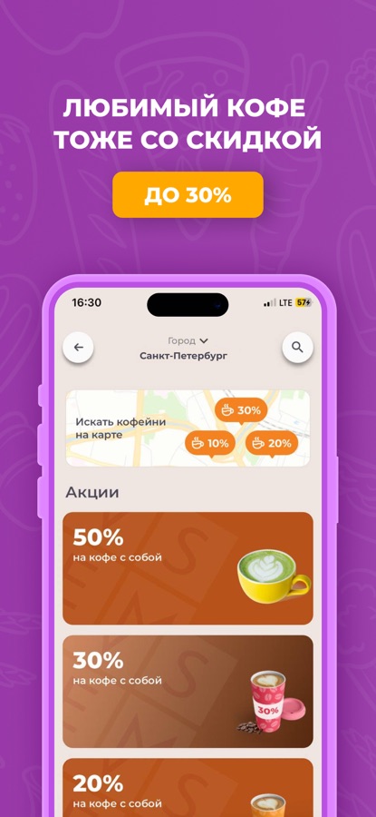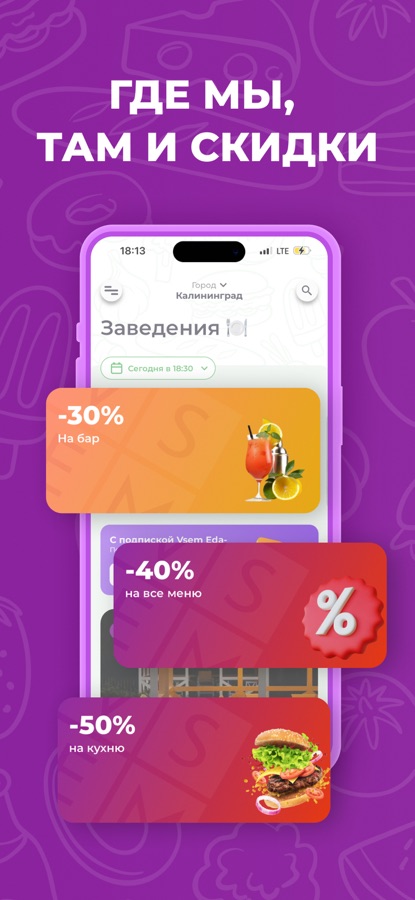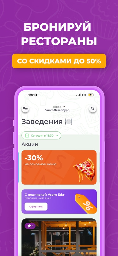 В одном приложении мы собрали самые выгодные предложения от ваших любимых ресторанов, кафе и баров.