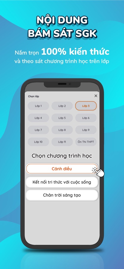 Chương trình học được đội ngũ chuyên môn của VUIHOC xây dựng theo sát 3 bộ sách giáo khoa (Cánh diều — Kết nối tri thức — Chân trời sáng tạo) của Bộ Giáo dục với lộ trình 35 tuần học như ở trên trường, cùng với 150 khóa học, gần 9000 bài giảng video và kho bài tập gồm 240.000 câu hỏi được cập nhật liên tục giúp con củng cố kiến thức và rèn luyện kỹ năng toàn diện.