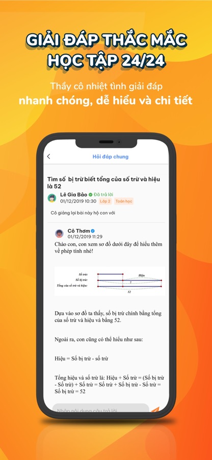— Hỏi đáp cùng AI với khả năng đưa ra câu trả lời nhanh gọn — chính xác — mọi lúc mọi nơi. Gia sư AI sẽ giải đáp các bài tập và những câu hỏi của con ngay lập tức theo cách giải quen thuộc như thầy cô đã dạy trên trường, giúp con nâng cao hiệu suất học tập.