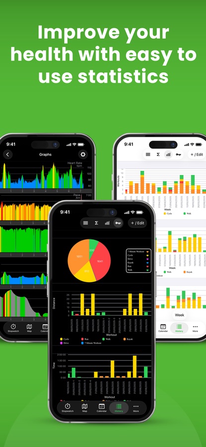 • Swipe across the stopwatch to see pages of stats, maps, and graphs — completely configurable.