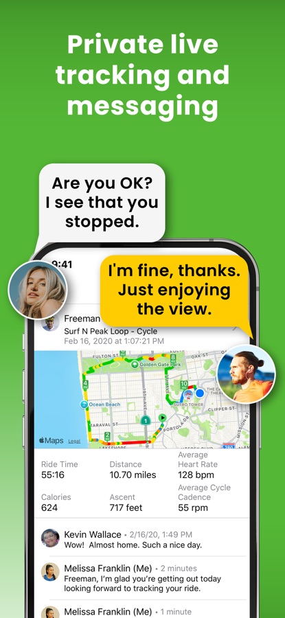• Automatically share your location, path, and statistics with family and friends.