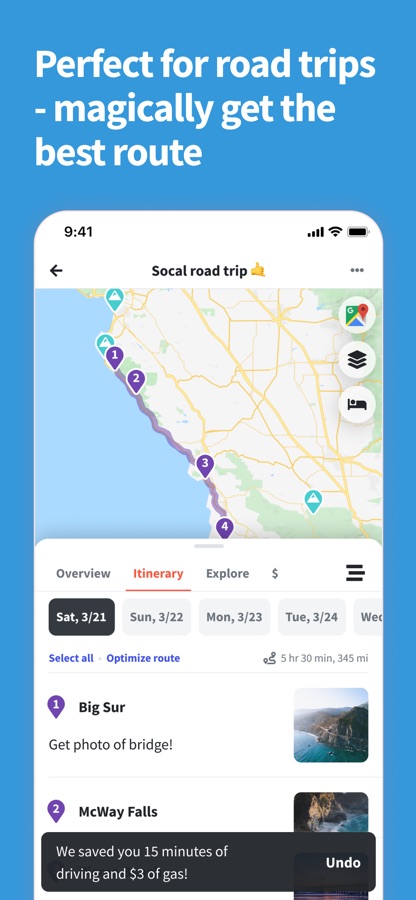 — Planning a road trip? Add unlimited stops for free, optimize your route, view times & distances between places, and export places to Google Maps